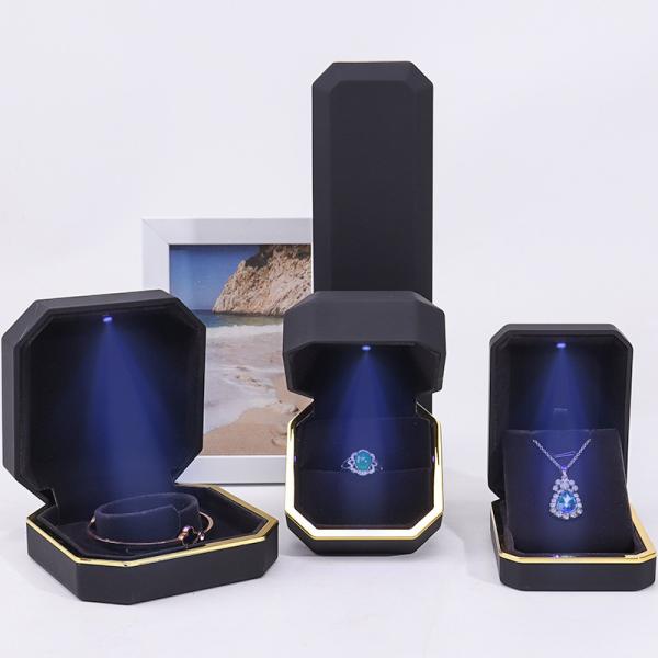 OEM ODM hign end Handmade black octagon Led light jewelry box with Velvet Insert Images |
